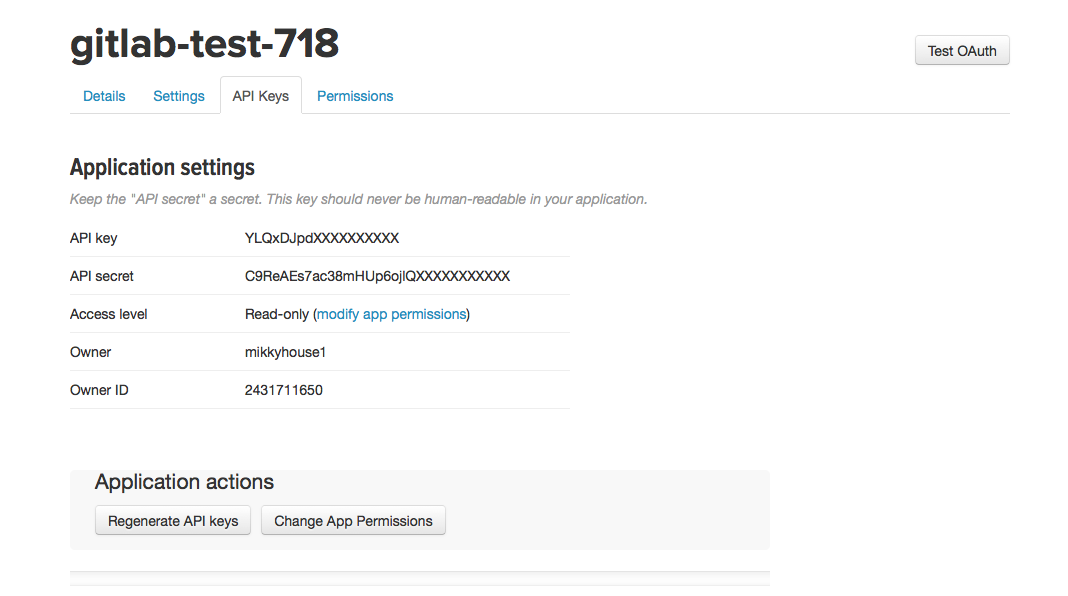 - Callback URL: 'https://gitlab.example.com/users/auth/twitter/callback'